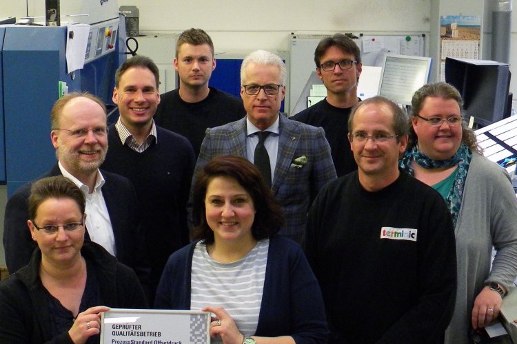 Der Kalenderhersteller Terminic mit Sitz in Bremen wurde zum fünften Mal in Folge – und damit seit 2009 ohne Unterbrechung – auf Basis der ISO 12647 nach Prozessstandard Offsetdruck (PSO) für den Kartonagendruck auf 100er Raster zertifiziert.