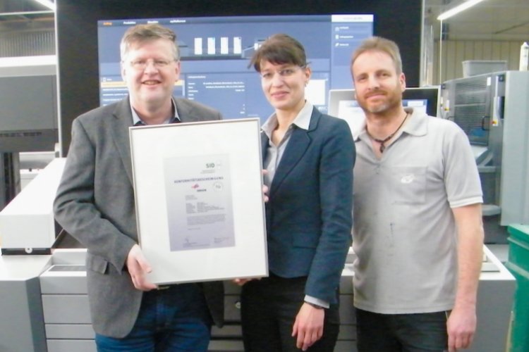 Anfang März bekam er die Bestätigung, mit seinen 25 Mitarbeitern die neuen Vorgaben des Prozessstandard Offsetdruck zu erfüllen. Betreut von Ingenieur Lothar Gutsche und geprüft vom Sächsischen Institut für die Druckindustrie (SID) konnte er die PSO-Urkunde des SID entgegennehmen.