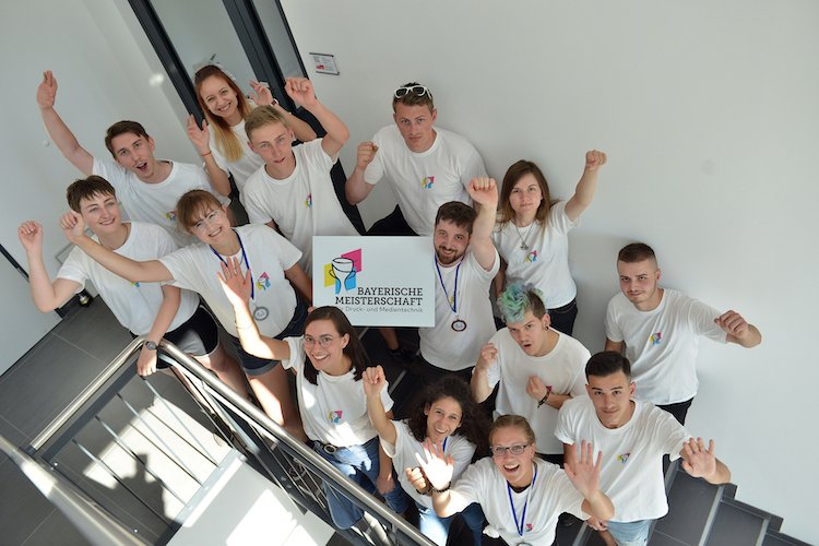 Aus 14 Teilnehmern wurden die Bayerischen Meister für die Bereiche Drucktechnik und Mediengestaltung gekürt. Auf dem Siegerpodest ganz oben standen Sophie Dicker, Bayerische Meisterin für Mediengestaltung, und Maximilian Glockshuber, Bayerischer Meister für Drucktechnik.