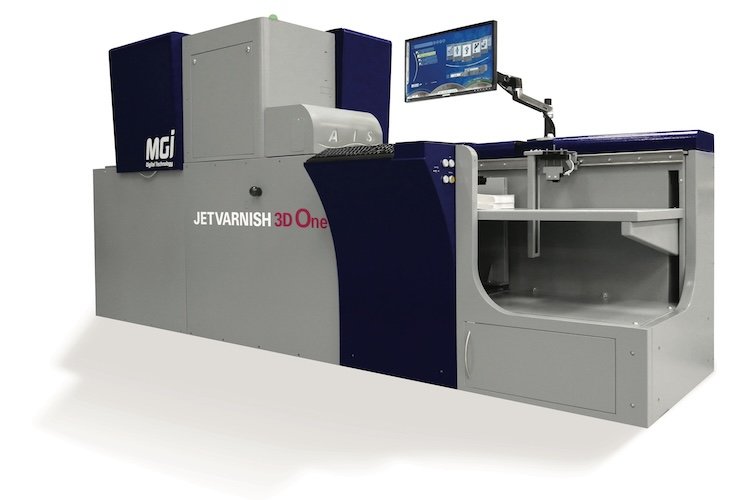 Die MGI JETvarnish 3D 52L kann als dediziertes System zur Veredelung von Druckerzeugnissen für die Produktion und für das Prototyping eingesetzt werden. Die patentierte Allzweck-Lackformel ermöglicht sowohl flache 2D-Spot-UV-Highlights als auch skulpturale, erhabene 3D-Spezialeffekte. Dies gilt für Bedruckstoffe von bis zu 600 g/qm. Die Bogenformate reichen bis zu 57 x 120 cm und die Lackdicke kann von einer herkömmlichen flachen UV-Spotlackierung von 7 μm bis zu 232 μm für erhabene 3D-Struktureffekte und eine haptische Oberfläche in einem Durchgang variieren.