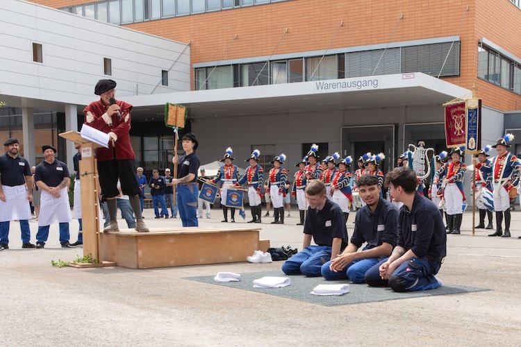 Die Schreiner Group hat bei der diesjährigen Gautschfeier 18 junge Mitarbeitende "von den Sünden der Lehrzeit" reingewaschen.